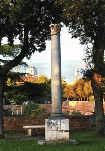 La colonna romana collocata nel 1938 sul Bastione Mulino a vento,, oggi collocata nel Giardino dell’Archeologia