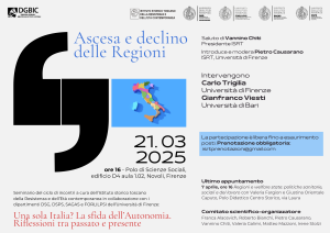 Istituto storico toscano della Resistenza e dell’età contemporanea in collaborazione con i Dipartimenti DSG SAGAS FORLILPSI DSPS dell’Università di Firenze vi invitano il prossimo 12 marzo ore 16.00 in Aula Magna Polo Scienze sociali, Novoli, Edificio D6 a