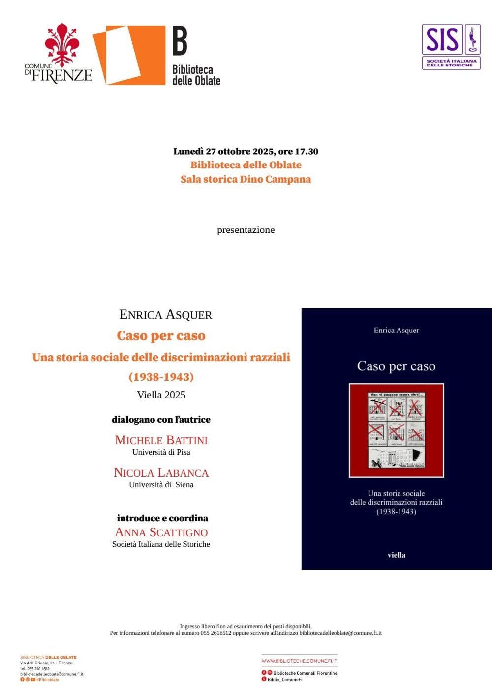 Presentazione del volume di Enrica Asquer “Caso per caso. Una storia sociale delle discriminazioni razziali (1938-1943)”