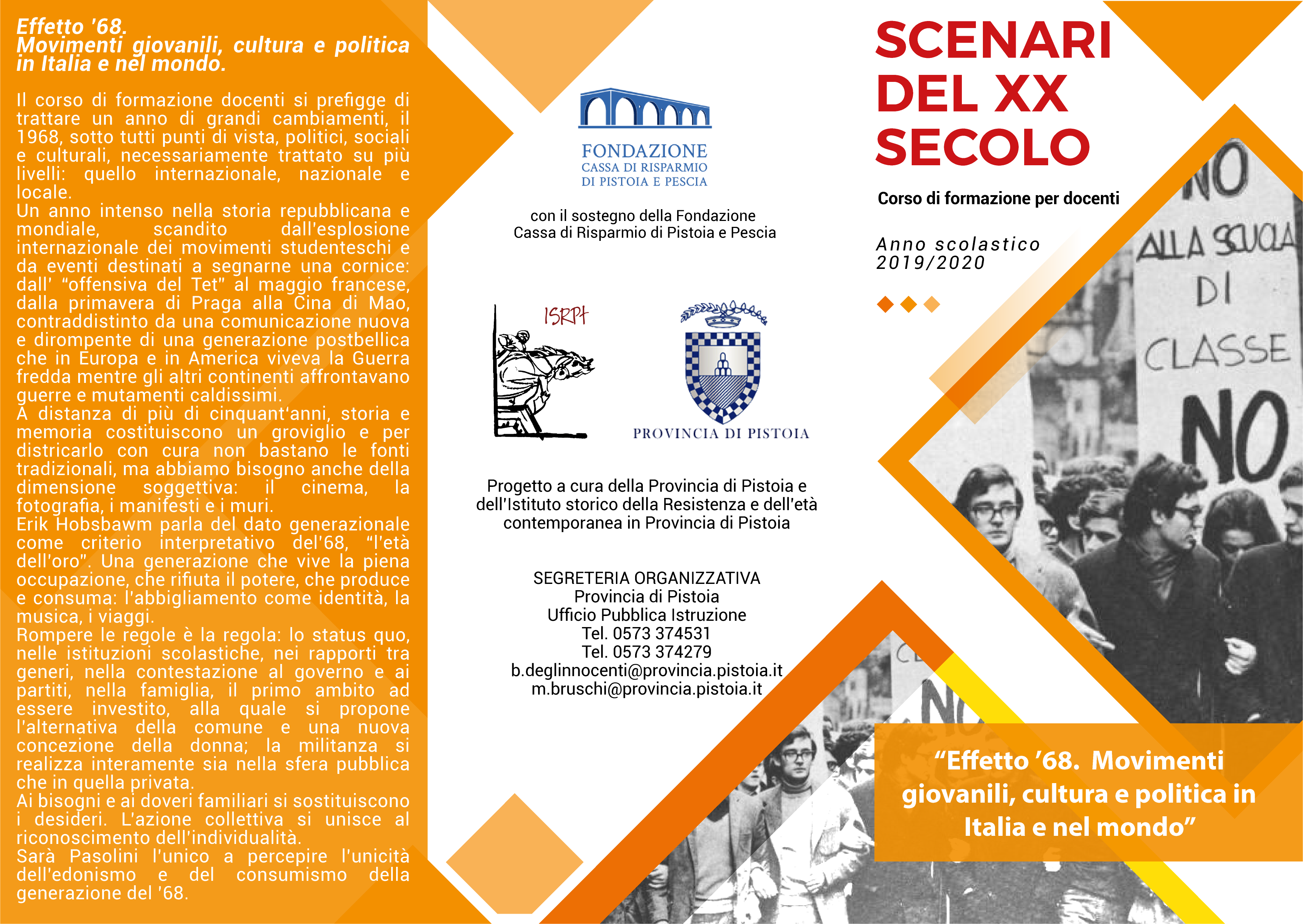 CONOSCERE LA COSTITUZIONE, VIVERE DA CITTADINI L’ISRT, grazie al contributo della Fondazione Marchi, per un nuovo anno insieme alle-agli studenti, per parlare di Costituzione, per vivere da cittadini. Sono aperte, a partire da oggi, le iscrizioni da parte delle scuole per aderire al progetto. – in allegato la schede informativa – il progetto Sulla scia...