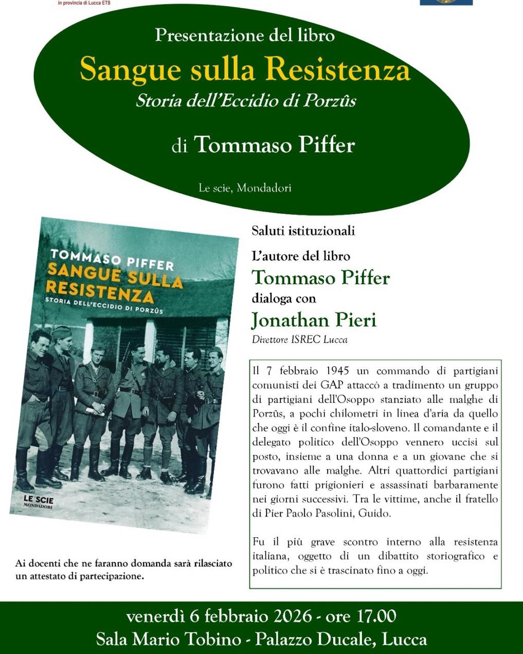 Evento organizzato dall’Istituto della Resistenza di Pistoia.