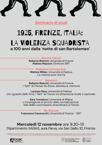 L’Istituto storico toscano della Resistenza e dell’età contemporanea in collaborazione con il Dipartimento SAGAS dell’Università di Firenze vi invita al seminario: