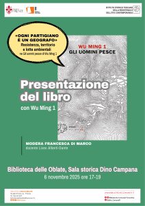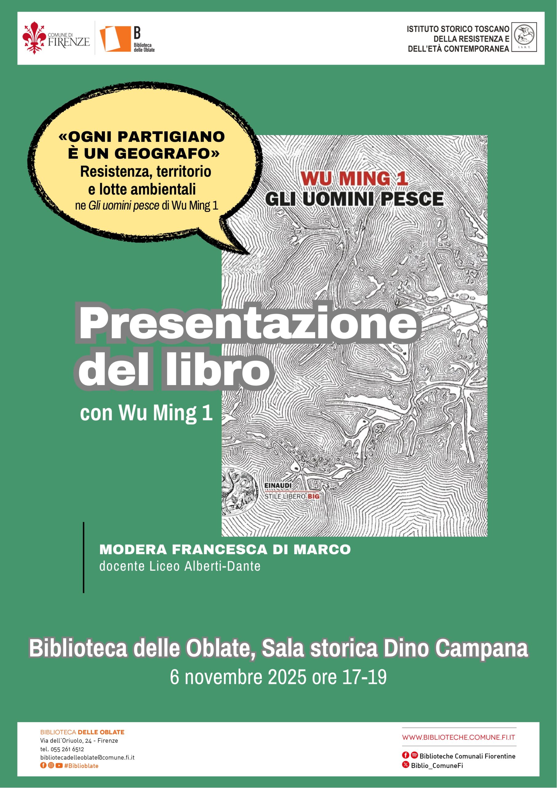 L’Istituto storico toscano della Resistenza e dell’età contemporanea, in collaborazione con la Biblioteca delle Oblate, vi invita alla presentazione del nuovo libro di WU MING 1 Gli uomini pesce il 6 novembre alle ore 17.00 nella sala storica Dino Campana della Biblioteca.