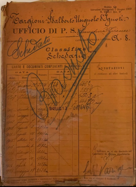 Una prima restituzione complessiva della figura di Targioni è offerta dal lavoro del Prof. Roberto Bianchi, che nel 2018 pubblica Una storia, un archivio. Idalberto Targioni nell’Italia tra Ottocento e Novecento[1], volume che rappresenta un primo punto di riferimento per la ricostruzione biografica del personaggio. Nell’appendice del libro trovano spazio l’elenco di consistenza dell’archivio, curato da Daniele Lovito, e una significativa testimonianza dell’erede Simonetta Chiappini.