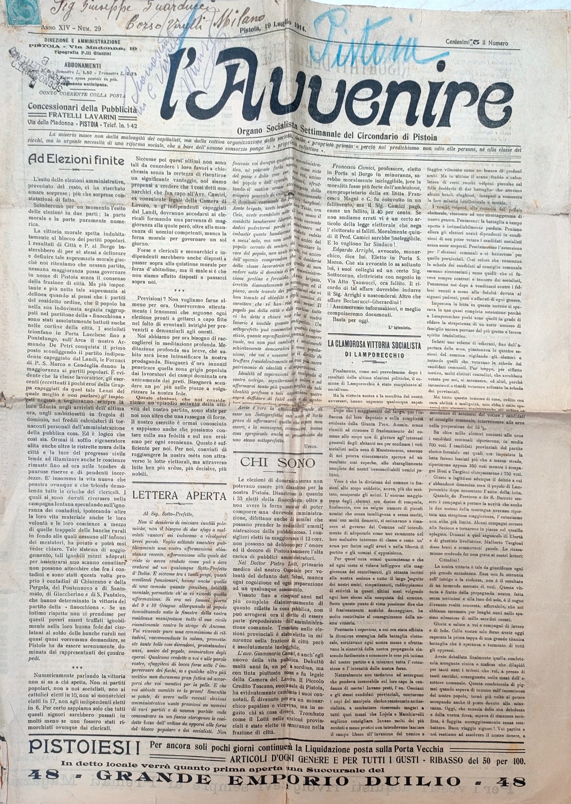 [8] L’intera vicenda è ricostruita dal punto di vista del protagonista in I.Targioni, Vent’anni di propaganda e cinque anni d’Amministrazione Socialista nel Comune di Lamporecchio, Tipografia Grazzini, Pistoia, 1920.
