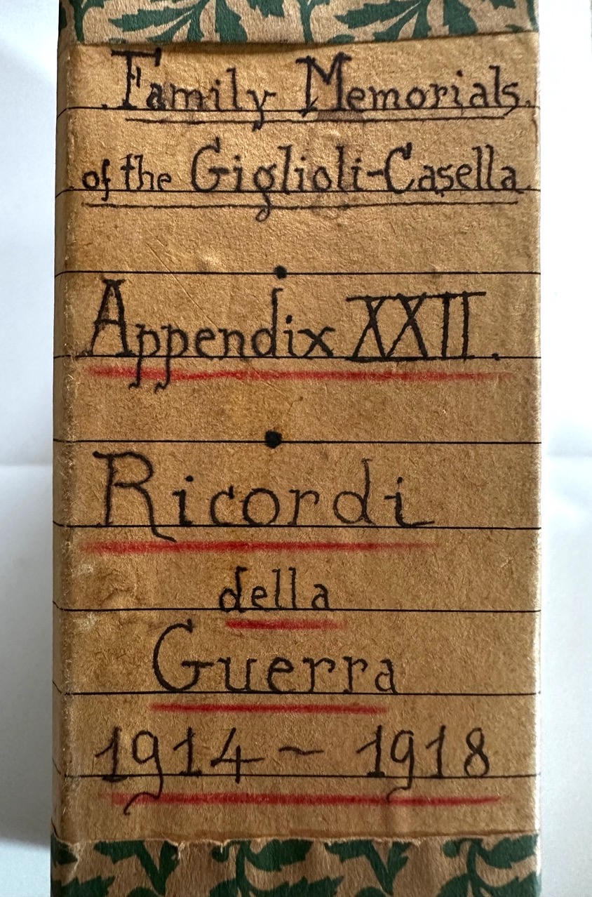 Dorso dell’App. XXII dei Family Memorials of the Giglioli-Casella. Ricordi della guerra 1914-1918