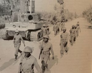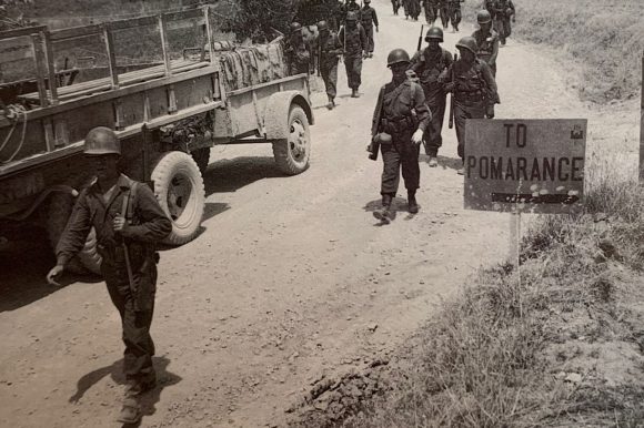 Nell’estate del ‘44 gli Alleati, impegnati nella risalita dell’Italia iniziata l’anno precedente con lo sbarco in Sicilia, con la vittoria di Montecassino – avvenuta alla metà di maggio – ruppero la resistenza della Linea Gustav e continuarono ad avanzare verso nord senza incontrare una decisa opposizione da parte dei tedeschi. Infatti dopo la caduta di Montecassino i nazisti decisero di abbandonare progressivamente i territori centrali attuando un lento arretramento ed evitando duri scontri con gli angloamericani, per concentrare il grosso delle forze all’altezza della Linea Gotica, quell’imponente sistema di fortificazioni che, da Massa fino a Pesaro, divideva l’Italia liberata dai territori ancora in mano alle forze nazifasciste. La decisione di attestare la maggioranza delle truppe dietro tale schieramento, unita all’azione di guerriglia e sabotaggio delle formazioni partigiane che agivano nel territorio, resero meno difficoltosa la risalita degli Alleati portando in un breve periodo alla liberazione di numerose città: a giugno vennero liberate Roma, Pescara, Grosseto e Perugia, mentre a luglio fu il turno di Siena, Ancona ed Arezzo. L’intervento alleato non riguardò però unicamente la conquista dei grandi centri, ma comprese anche l’avanzamento in quei territori meno noti dove ancora si registrava la presenza del nemico e che quindi dovevano necessariamente essere ispezionati prima di continuare la risalita della penisola.