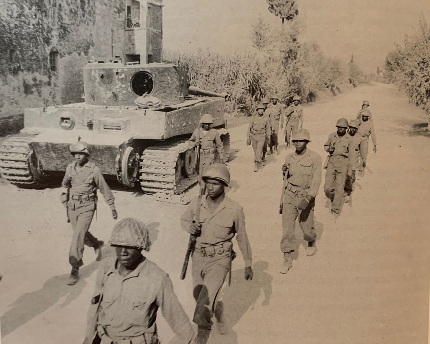 Le giornate nel rifugio trascorrevano lentamente e tra le mura della cantina correvano le voci più disparate: prima gli americani venivano segnalati a Volterra, per poi essere avvistati a Collesalvetti o essere addirittura già entrati a Pontedera… Insomma, stando a queste voci gli Alleati erano dovunque tranne che a Lari, dove invece segnalavano la loro presenza solamente a suon di colpi d’artiglieria. La mattina del 16 le voci di un loro arrivo si fecero via via più insistenti, la notizia ebbe il duplice effetto di fugare i dubbi che serpeggiavano all’interno del rifugio e di risvegliare l’animo dei presenti. Le persone che affollavano la cantina erano ora percorse da un’euforia contagiosa, desiderose di poter scorgere finalmente quei soldati americani di cui tanto si parlava ma che ancora non si era riusciti a vedere. Per celebrare l’imminente arrivo le donne si misero a preparare la pasta al ragù, mentre gli uomini si occuparono di infiascare il vino dalle damigiane. Nell’entusiasmo collettivo qualcuno si affacciò cautamente dall’entrata del rifugio per poter segnalare l’arrivo degli americani. Quando ormai l’acqua per la pasta bolliva e si era già iniziato a brindare in barba a qualsiasi forma di superstizione si udì urlare “Eccoli! Eccoli! Sono arrivati!”. Udite quelle parole tutti i presenti immediatamente si riversarono all’entrata per ammirare il sospirato arrivo degli americani: accalcati all’uscio videro avanzare lungo la strada, che da Lari porta ad Aiale, un gruppo di una decina di soldati procedere in modo guardingo. Di fronte a loro gli abitanti del rifugio non riuscirono a reprimere le proprie emozioni e si lanciarono per strada acclamando ed abbracciando quei salvatori con l’elmetto. Dopo un’iniziale titubanza i fanti si lasciarono anch’essi trasportare dall’entusiasmo, accettando di buon grado i bicchieri di vino che gli venivano offerti e le numerose pacche che piovevano sulle loro spalle. In una frazione di secondo, come d’incanto, la guerra con il suo carico di sofferenza sparì per far spazio ad un momento di beatitudine che pervase tutti i presenti e cancellò per un istante tutti i brutti momenti7.