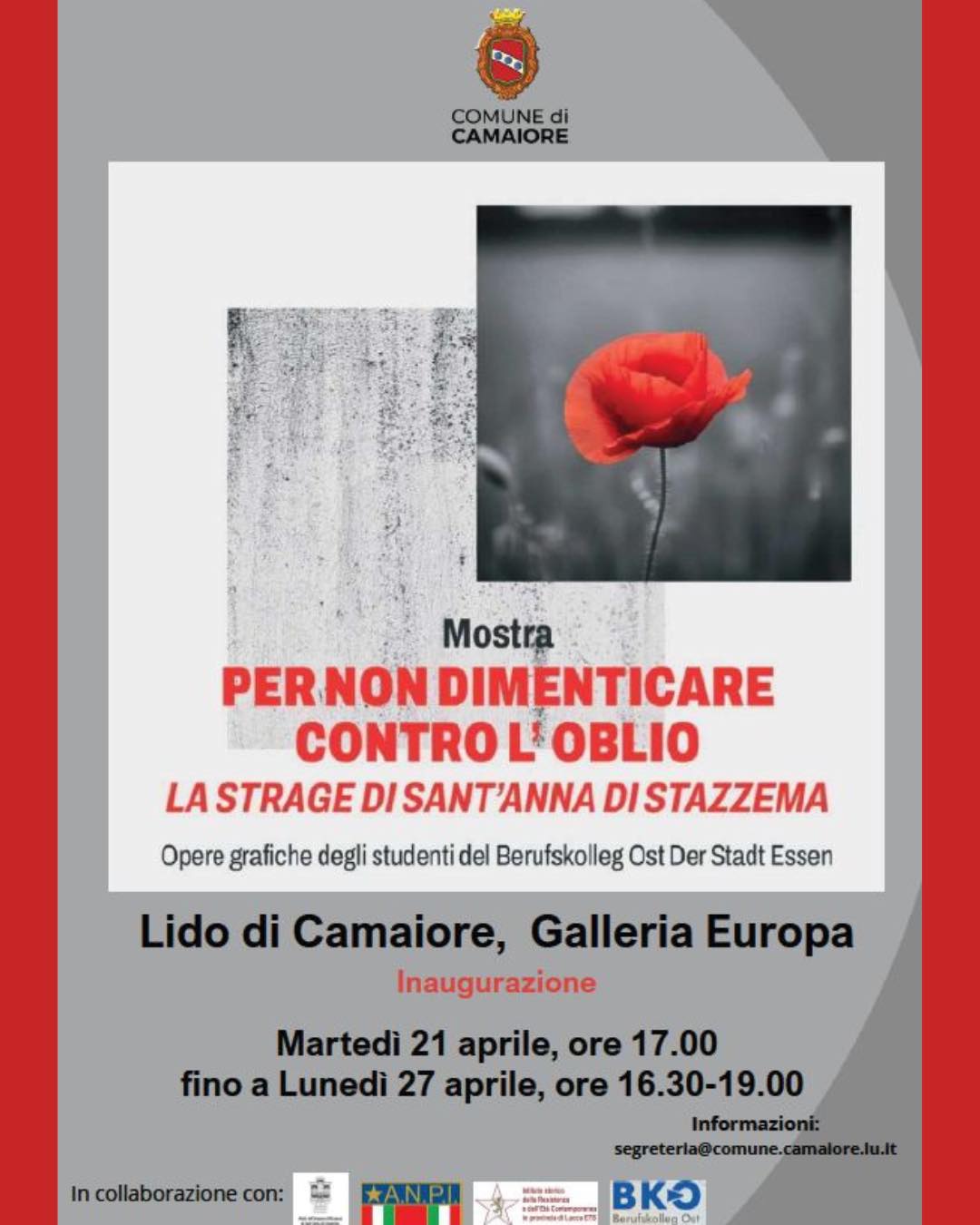 Per informazioni: segreteria@comune.camaiore.lu.it