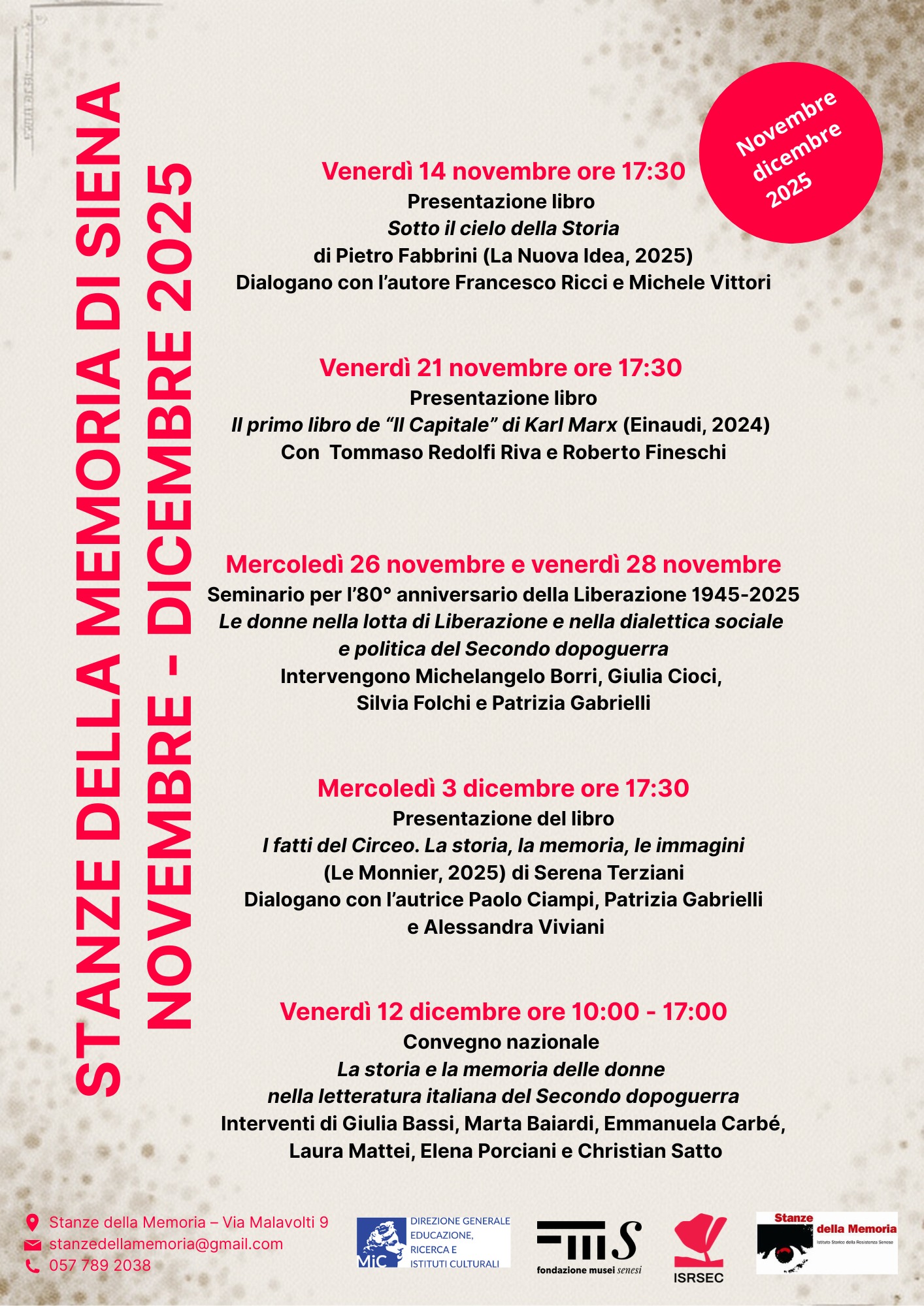 Novembre-dicembre alle Stanze della Memoria